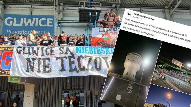 “Gliwice są niebiesko-czerwone nie tęczowe” – to napis jaki zawieszono na trybunach stadionu przy ulicy Okrzei podczas meczu Piasta Gliwice ze Śląskiem Wrocław. Niedzielne spotkanie sportowe stało się okazją do wyrażenia opinii kibiców, które odnoszą się najprawdopodobniej do planowanego w sierpniu Marszu Równości.