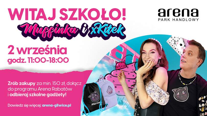 Park Handlowy Arena to właściwy adres, jeśli chodzi o szkolne zakupy. U nas znajdziecie to, co przyda się w zarówno młodszym uczniom, jak i nastolatkom. Ale to nie wszystko! Już w sobotę 2 września przygotowaliśmy prawdziwą niespodziankę – wyjątkowe szkolne gadżety z kolekcji sygnowanej przez Muffinkę i xKitka w prezencie.