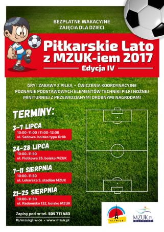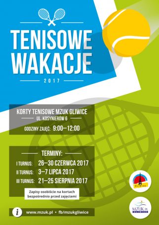 Wakacje rozpoczęły się także na kortach – II turnus odbędzie się w dniach 3 – 7 lipca na kortach tenisowych przy ul. Kosynierów 6, w godzinach 9:00 – 12:00. W tych dniach rusza również “Piłkarskie lato z MZUK-iem” – I turus (3 – 7 lipca) odbywać się będzie na boisku przy ul. Sadowej.