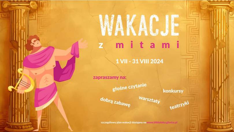 Wakacje z mitami to propozycja gliwickiej Biblioteki na lipiec i sierpień. Będą zajęcia z haftu, tworzenia witraży, komiksów, malowania akrylami, a nawet budowanie Olimpu z klocków LEGO. Jedną z propozycji jest też spotkanie z kryminalnym z gliwickiej policji.