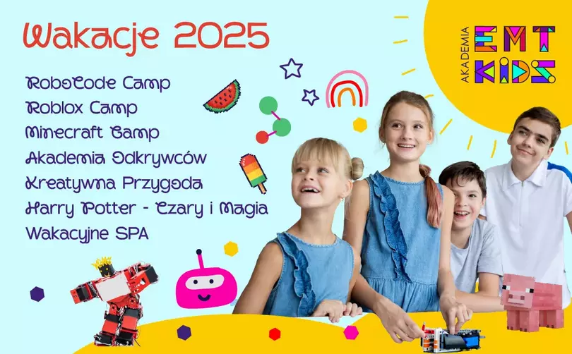 Jeśli Twoje dziecko lubi twórcze wyzwania, eksperymenty i zabawy rozwijające wyobraźnię – postaw na warsztaty organizowane przez Akademię EMT-Kids. To półkolonie pełne przygód, kreatywnych zajęć i fascynujących eksperymentów naukowych, które uczą poprzez zabawę. Dzieci będą odkrywać świat, budować, konstruować, rozwiązywać zagadki i współpracować w grupie – a wszystko to pod okiem doświadczonych pedagogów i animatorów.