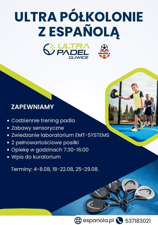 Półkolonie na kortach Ultra Padel: https://www.fundacjaespanola.pl/ultrapolkoloniezespanola