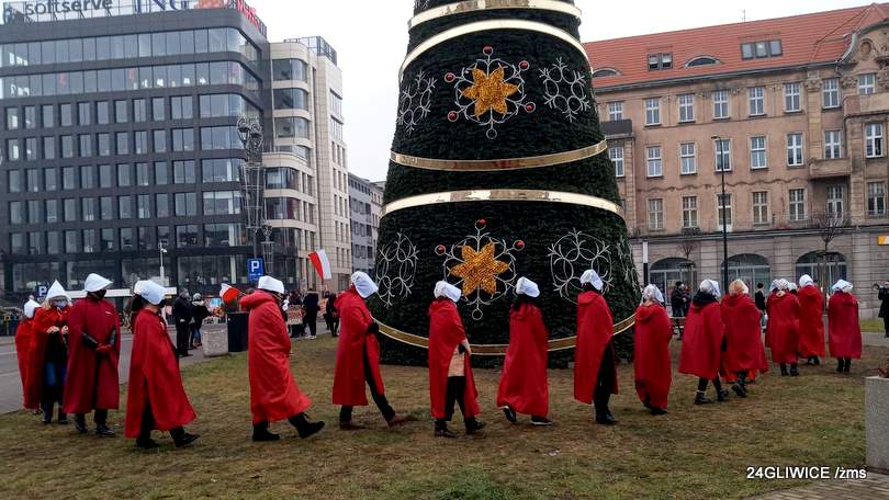 *) “Opowieści podręcznej” Margaret Atwood. Właśnie stąd wzięły się stroje uczestniczek gliwickiego spaceru.