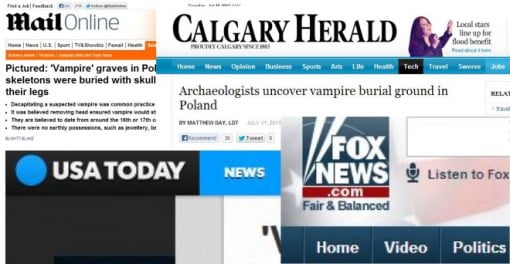 Internetowe wydanie “New York Post” zatytułowało informację “Łapcie za czosnek! Pochówek wampirów znaleziony w Polsce”.