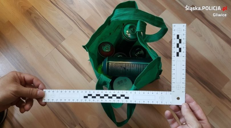 Rzecz działa się przy ul. Sztabu Powstańczego(nr 2 – 6), po zmroku. Wandale zniszczyli elewację budynku farbą, wykonując wulgarne napisy, mające obrażać kibiców innej drużyny. Sprawcy oszpecili budynek 8 kondygnacyjny, murki oraz ścianę garażu kilkumetrowymi „malowidłami”. Wraz z zatrzymanymi zabezpieczono ich malarskie akcesoria. Podczas przeszukania przy jednym z zatrzymanych znaleziono środki odurzające. Sprawę prowadzi Komisariat II Policji w Gliwicach.