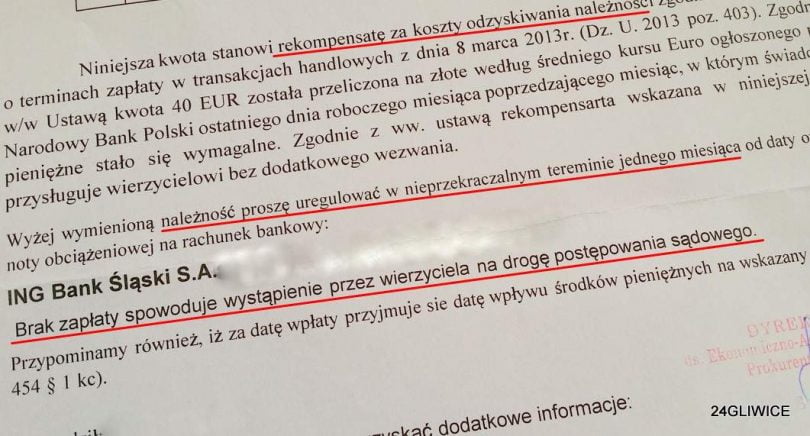 Tymczasem, przedsiębiorcy, którzy zastosowali się do wskazówek, otrzymują z Zarządu Budynków Miejskich dość obcesowe w treści pisma wzywające do zapłaty rekompensaty za “koszty odzyskiwania należności”. Nie ma żartów, bo kto w “nieprzekraczalnym terminie jednego miesiąca” nie zapłaci kary stanowiącej równowartość 40 euro, musi się liczyć z konsekwencjami. Miejska spółka pisze wprost, że sprawa zostanie skierowana na drogę postępowania sądowego.