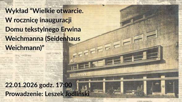 „Wielkie otwarcie. W rocznicę inauguracji Domu tekstylnego Erwina Weichmanna (Seidenhaus Weichmann)” – to tytuł wykładu, jaki w Domu Pamięci Żydów Górnośląskich wygłosi dyrektor Muzeum w Gliwicach, Leszek Jodliński. Wydarzenie odbędzie się w czwartek, 22 stycznia. Rozpoczęcie o godz. 17:00.