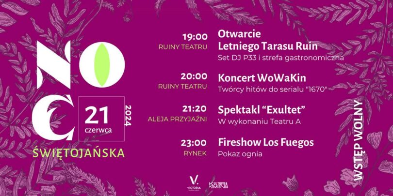 20/06/2024Noc Świętojańska 2024. W Ruinach Teatru Victoria, na Rynku i Alei Przyjaźni czekają na Was wyjątkowe atrakcje
