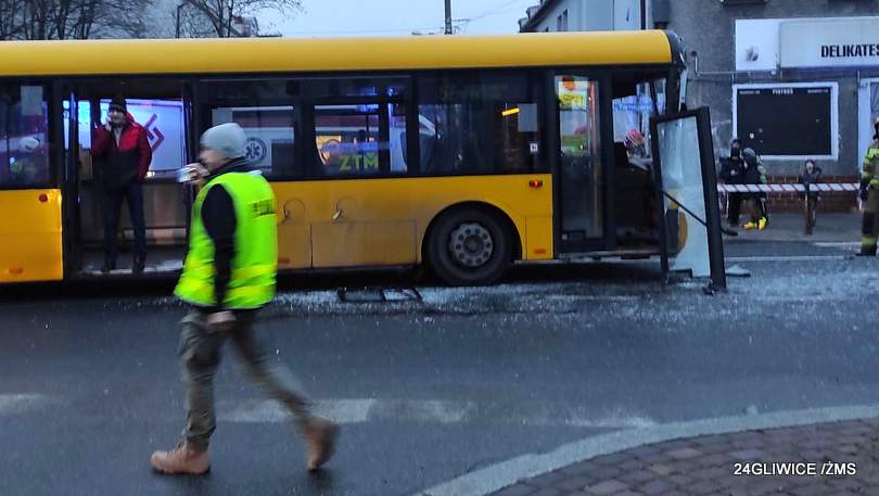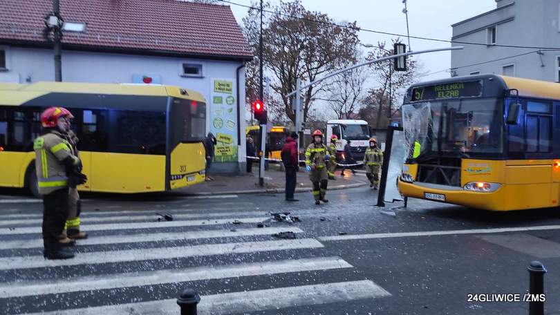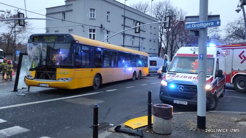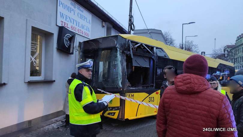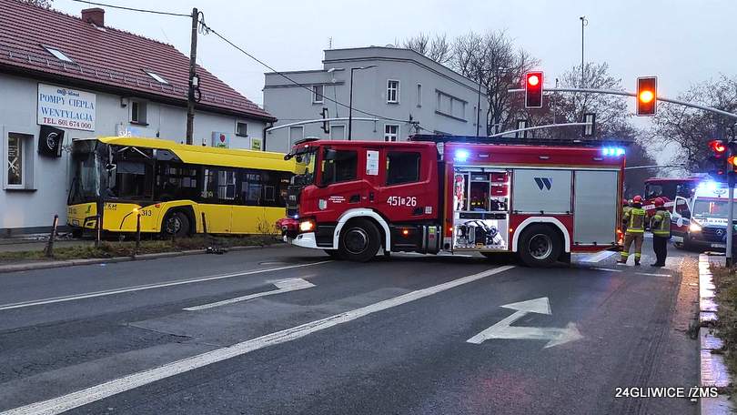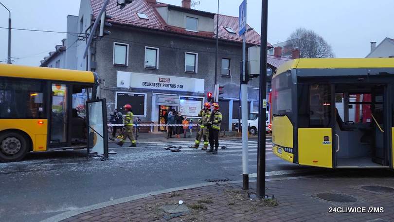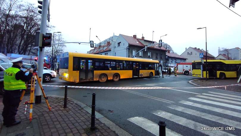 – Autobus z ulicy Skowrońskiego wyjechał na skrzyżowanie na zielonej strzałce w prawo. Najechał na niego autobus linii 57 jadący prosto ulicą Tarnogórską (w kierunku Tarnowskich Gór), i uderzył w jego bok – relacjonuje podinspektor Marek Słomski, oficer prasowy KMP Gliwice, który zjawił się na miejscu wypadku. – Uderzony autobus stracił sterowność i uderzył w ścianę budynku.