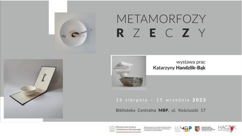 Od 16 sierpnia (środa) można oglądać wystawę „Metamorfozy rzeczy”, czyli ekspozycję prac Katarzyny Handzlik-Bąk – absolwentki wrocławskiej Akademii Sztuk Pięknych, Wydziału Ceramiki i Szkła. Artystka zawodowo związana jest z Uniwersytetem Śląskim. W Instytucie Sztuk Plastycznych Wydziału Sztuki i Nauk o Edukacji prowadzi autorską pracownię Sztuki Przedmiotu. Jej twórczość skupiona jest wokół działań przestrzennych: ceramiki, asamblażu oraz ready-made.