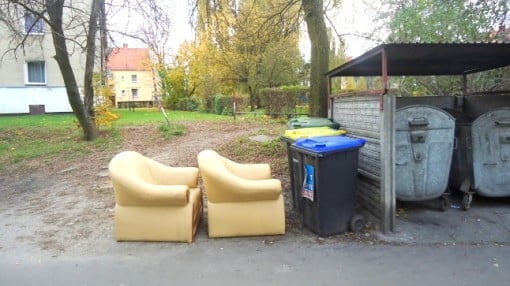 Na śmietnikach często można zobaczyć wyrzucony meble, opony, a pozbywanie się ich poza wyznaczonymi terminami jest nielegalne.