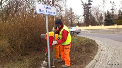 We wtorek dwuosobowa ekipa pracowników Przedsiębiorstwa Remontów Ulic i Mostów zamontowała kolejne tabliczki. Generał Władysław Anders został patronem ronda w miejscu, w którym krzyżują się ulice Kozielska, Andersa i Łabędzka.