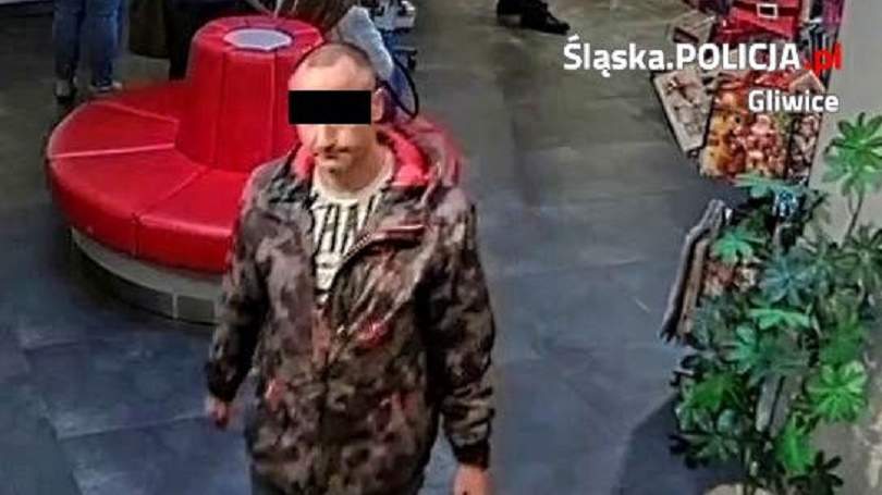 Widoczny na zdjęciach mężczyzna jest podejrzany o dokonanie kilku kradzieży artykułów przemysłowych i spożywczych z urzędu pocztowego w Gliwicach przy ul. Zwycięstwa 28, do których dochodziło między 2 grudnia ub. roku a 8 marca.