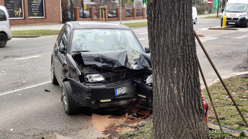 Kobieta z podejrzeniem złamania żeber trafiła do szpitala po zdarzeniu drogowym, który miał miejsce na ulicy Dąbrowskiego w Gliwicach. Wskutek prawdopodobnie błędu jednego z kierowców biorących w nim udział, samochód uderzył w drzewo.