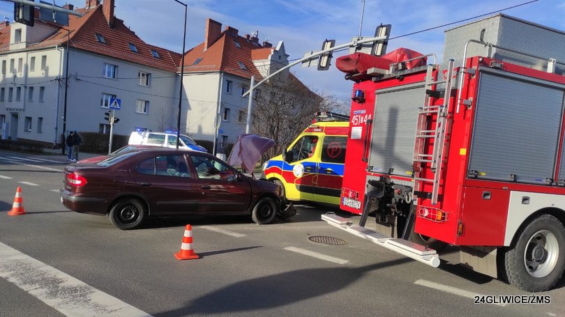 Na skrzyżowaniu ulic Lublinieckiej, Warszawskiej i Grottgera doszło do zderzenia dwóch samochodów osobowych – toyoty i renault megane.