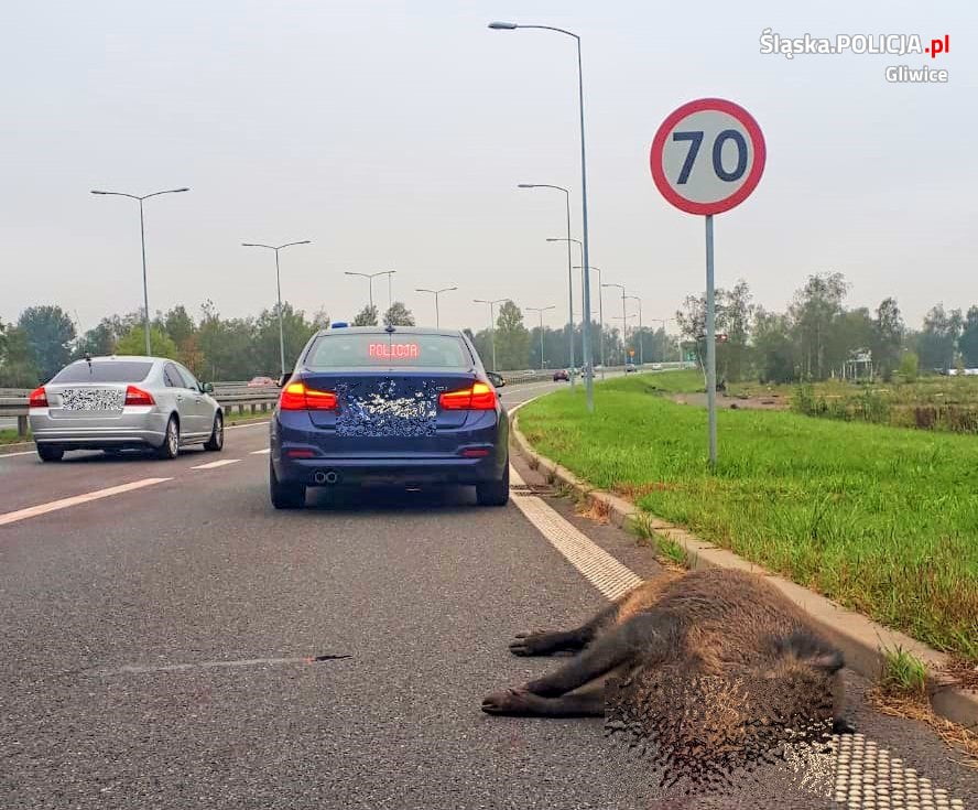 Na DTŚ w Gliwicach samochód osobowy zderzył się z przebiegającym dzikiem. Kierującemu nic się nie stało, zwierzę zginęło. Sytuacja miała miejsce w poniedziałek przed południem.