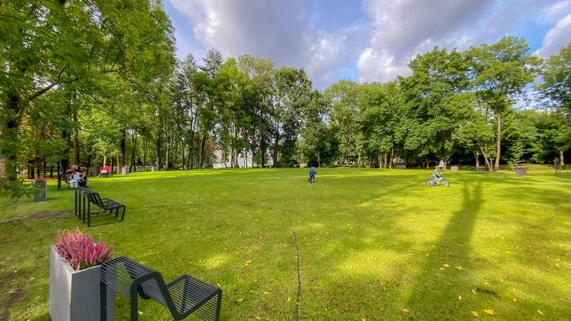 Pieczołowicie zajęto się terenem o powierzchni 6800 m2. PWiK postanowiło w niewielkim stopniu ingerować w ukształtowanie terenu, zachować zacienione miejsca, zastosować naturalne materiały oraz zadbać o dobrą retencję wody. Zachowano stare drzewa i poddano je zabiegom pielęgnacyjnym, urządzono spory trawnik. Konieczna była rekultywacja gruntu, a największe wyzwanie stanowiło usunięcie grubej betonowej warstwy o powierzchni 1600 m2. Zastąpiła ją zieleń. Całość dopełnią różnego rodzaju siedziska. W efekcie będzie tu miejsce na chwilę relaksu, leżakowanie czy zabawę. Oczywiście nie zapomniano o czworonogach, umieszczając odpowiedni kosz na śmieci.