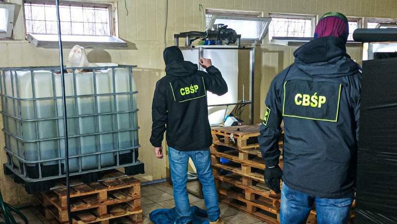 W hali wynajmowanej w Łabędach zatrzymano “chemika” zamieszanego w produkcję tej substancji, zabezpieczono też ok. pół tony gotowego produktu oraz 3 tysiące litrów odpadów poprodukcyjnych. Ta akcja przeprowadzona została przez CBŚP pod nadzorem mazowieckiej Prokuratury Krajowej. Więcej na ten temat pisaliśmy tu: