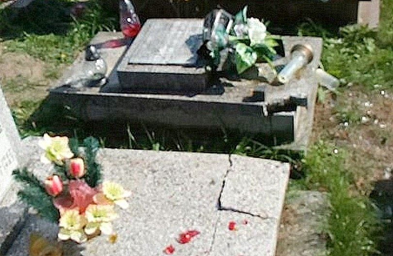 Za sprofanowanie miejsca pochówku sprawcom grożą nawet dwa lata więzienia, jednak w połączeniu z aktem zniszczenia mienia, zagrożenie karą wzrasta do lat 5. (KMP Gliwice)
