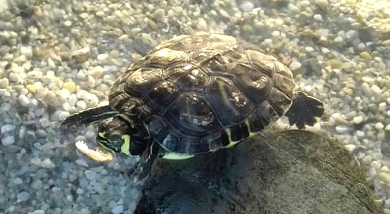 Teraz żółw, zwany Gadzikiem, jest już bezpieczny w domu tymczasowym, gdzie w odpowiednich dla siebie warunkach (ma czyste akwarium, żwirek i jedzonko) czeka na nowego, odpowiedzialnego opiekuna.